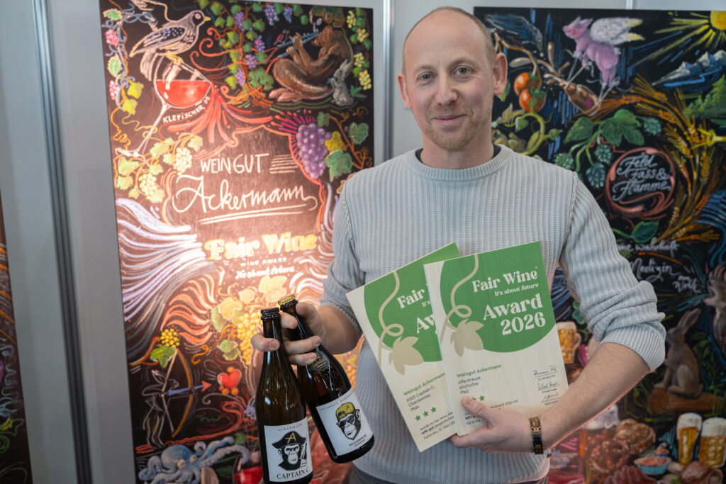 Der Affe auf dem Etikett hat seine Bewandtnis: Bei uns in der Südpfalz ist es üblich, dass die Einwohner jedes Dorfes Spitznamen haben. Im Nachbardorf sind es zum Beispiel die Esel, andernorts gibt es Erbsen oder Dampfnudeln. Manche hat es aber auch härter getroffen, wie die Messerstecher oder Sesselmörder…